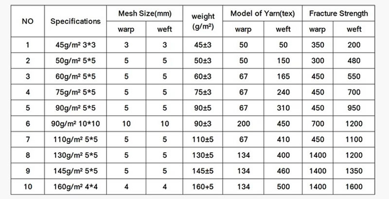 | 14 x 14mesh | 50-80g/m2 | As request |